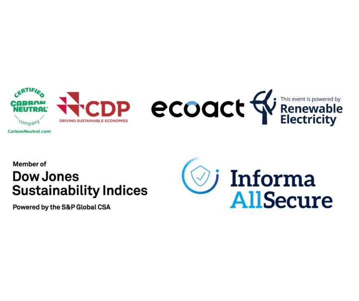 Food & Hospitality Vietnam tuân thủ theo bộ tiêu chuẩn an toàn của Informa All Secure, sử dụng 100% năng lượng tái tạo và được xếp hạng cao trong Chỉ số Bền vững Dow Jones.